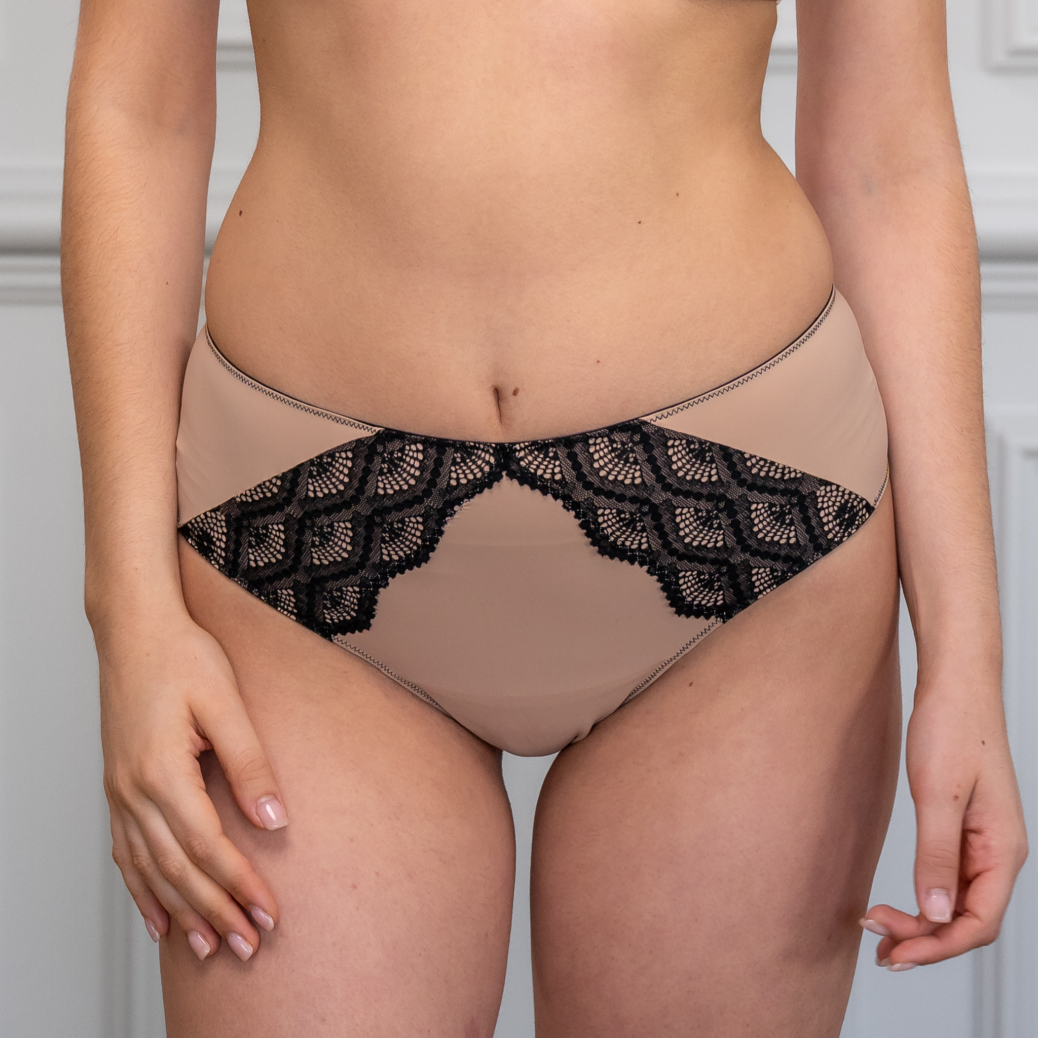 Brazilian σλιπ σε κλασικό συνδυασμό μπεζ και μαύρου.
