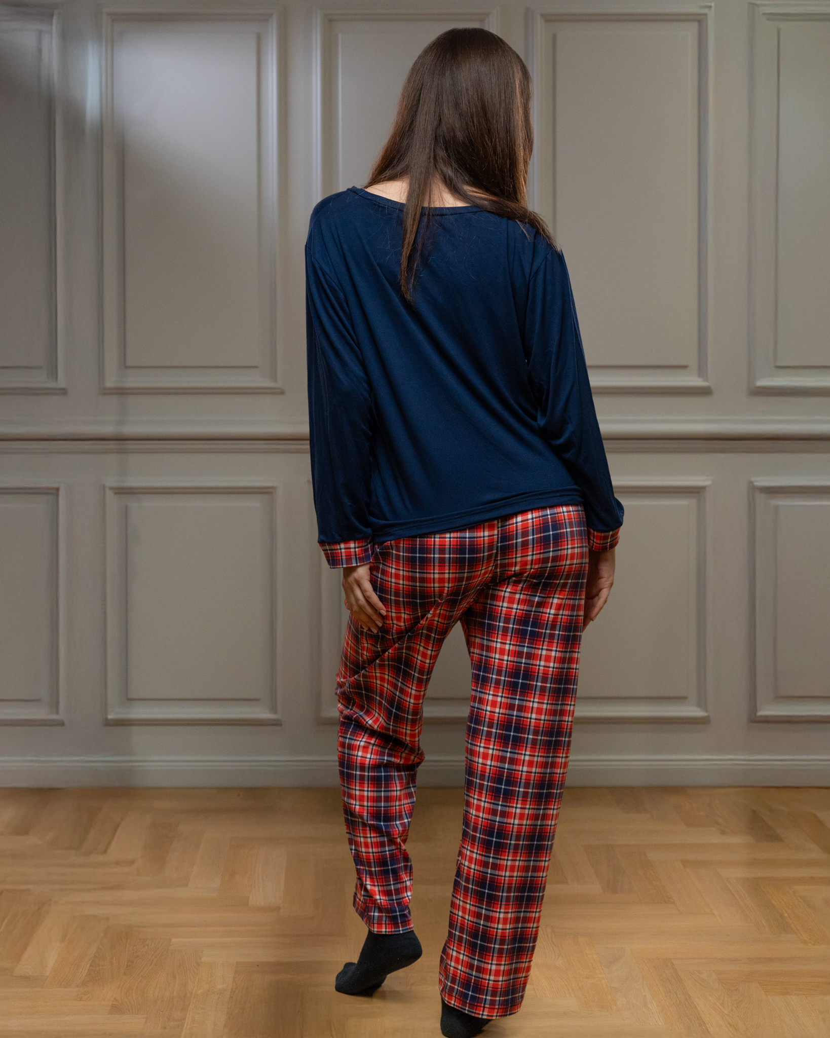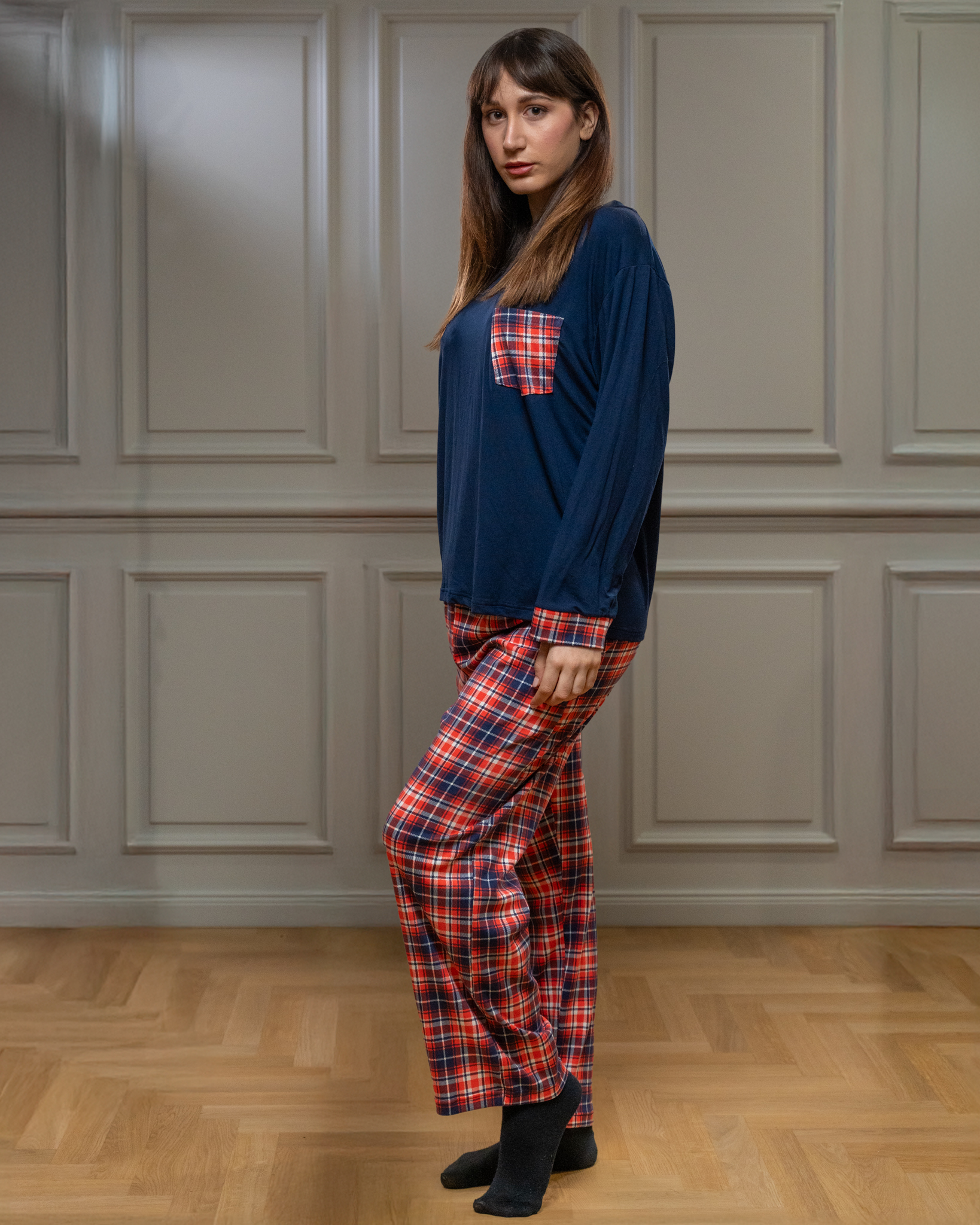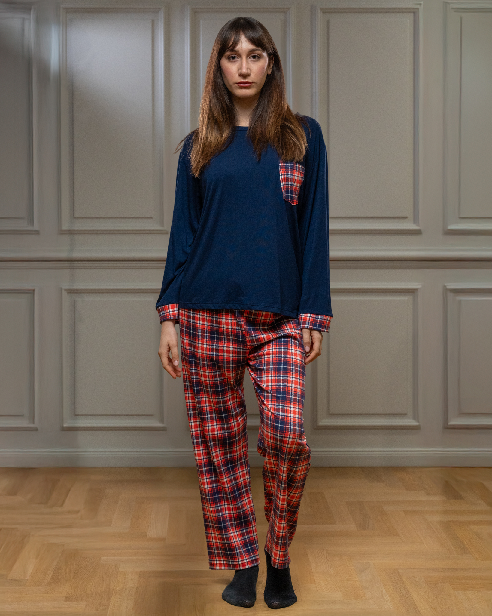Πιτζάμα με τύπωμα καρό, σε άνετη γραμμή από μαλακή και ελαστική βισκόζη.