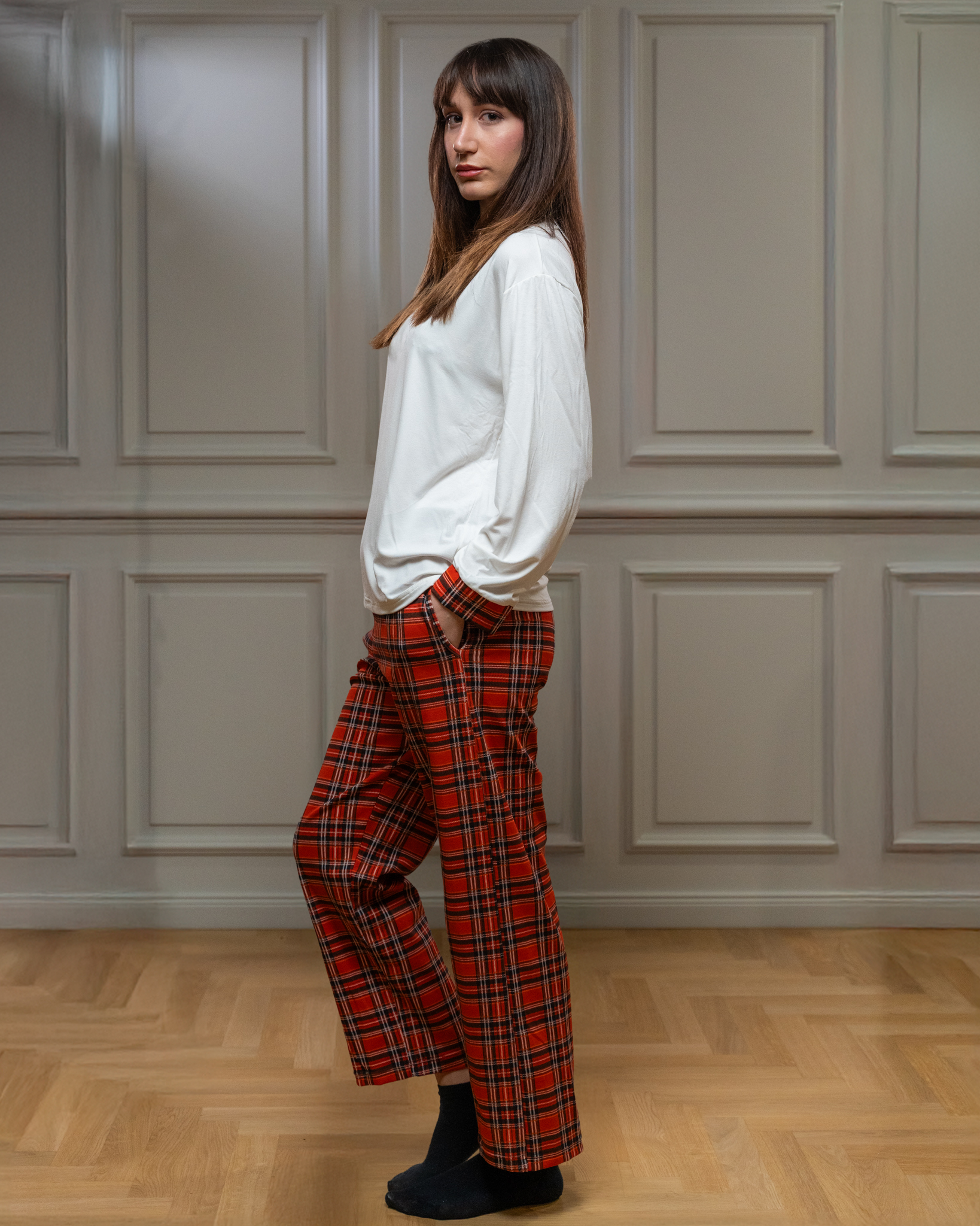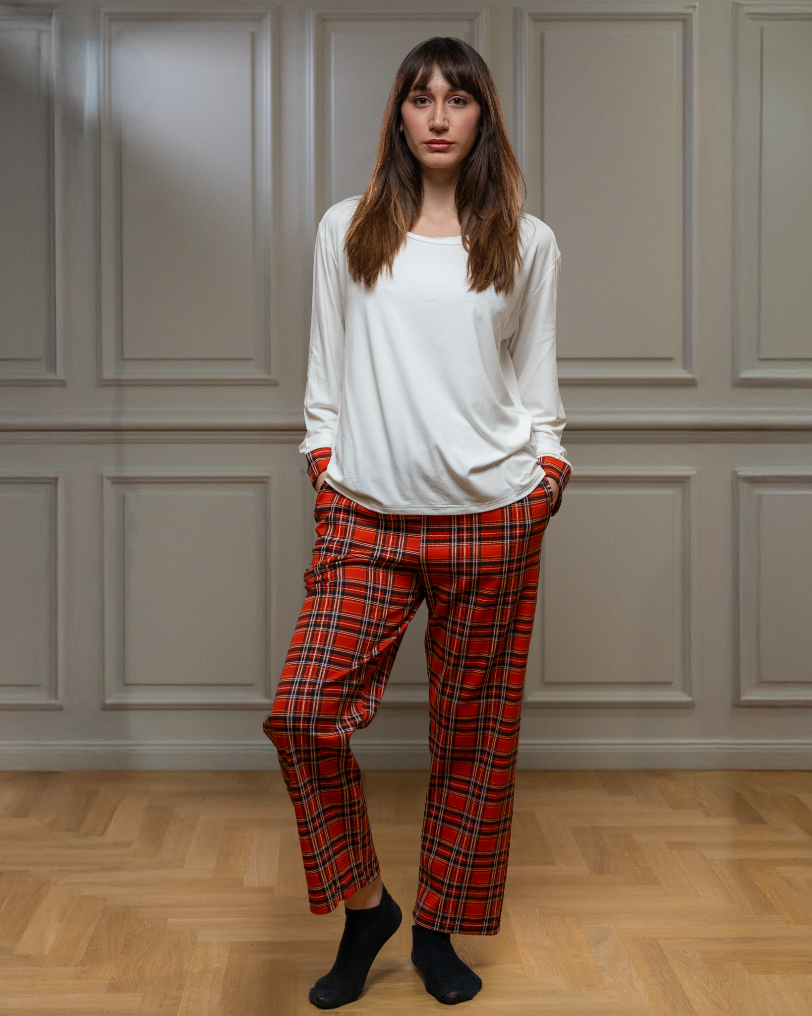 Πιτζάμα με τύπωμα καρό, σε άνετη γραμμή από μαλακή και ελαστική βισκόζη.