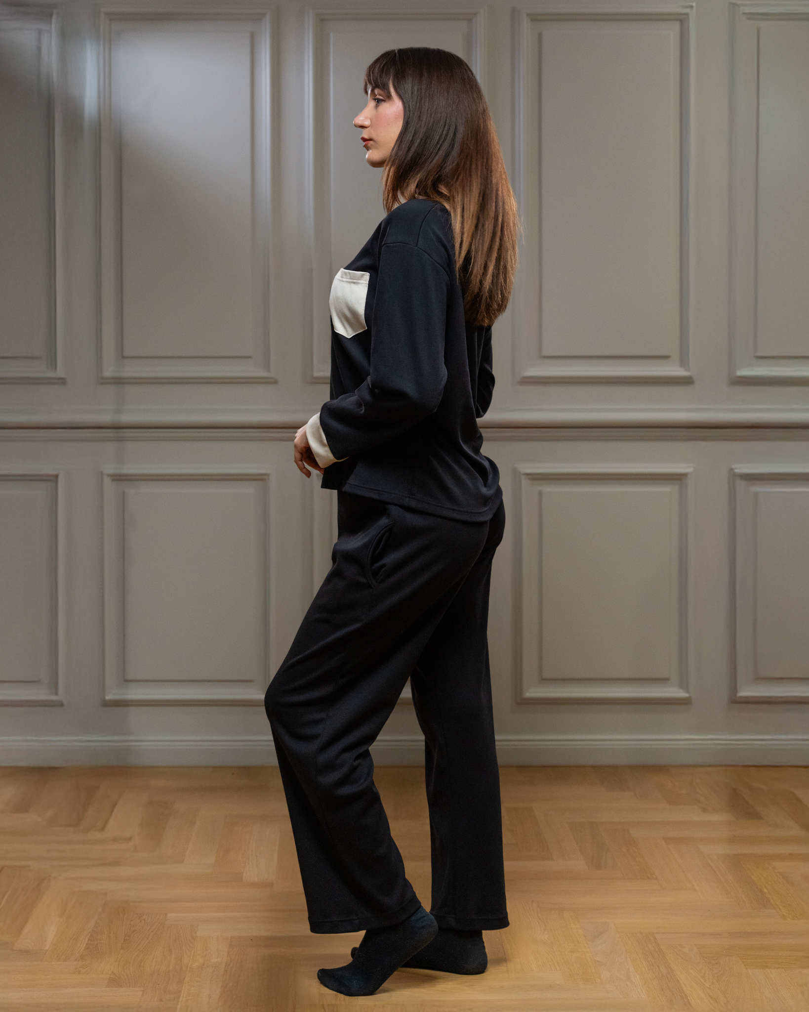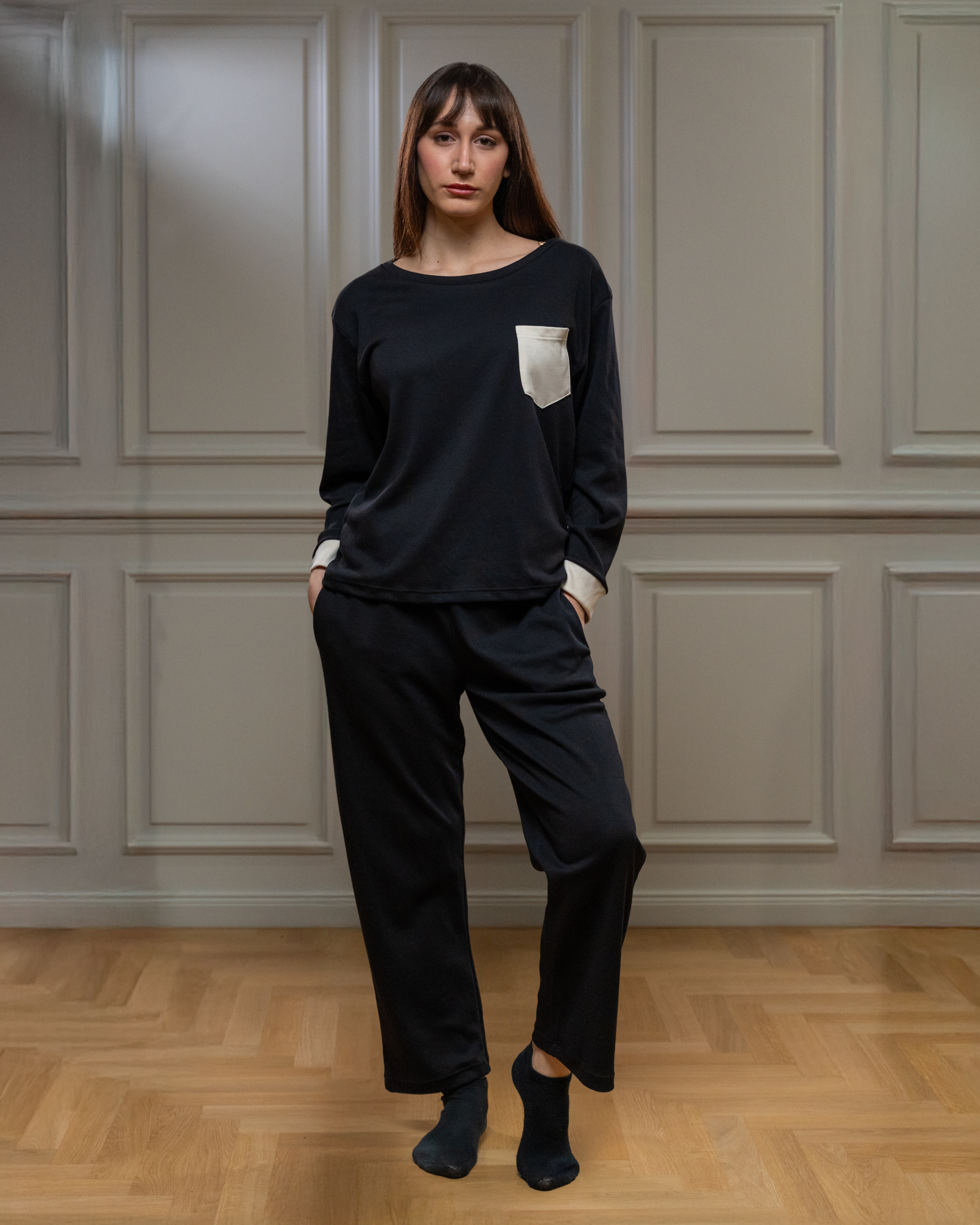 Πιτζάμα από εξαιρειτκό βαμβακερό ύφασμα με απαλή υφή και ελαστικότητα.