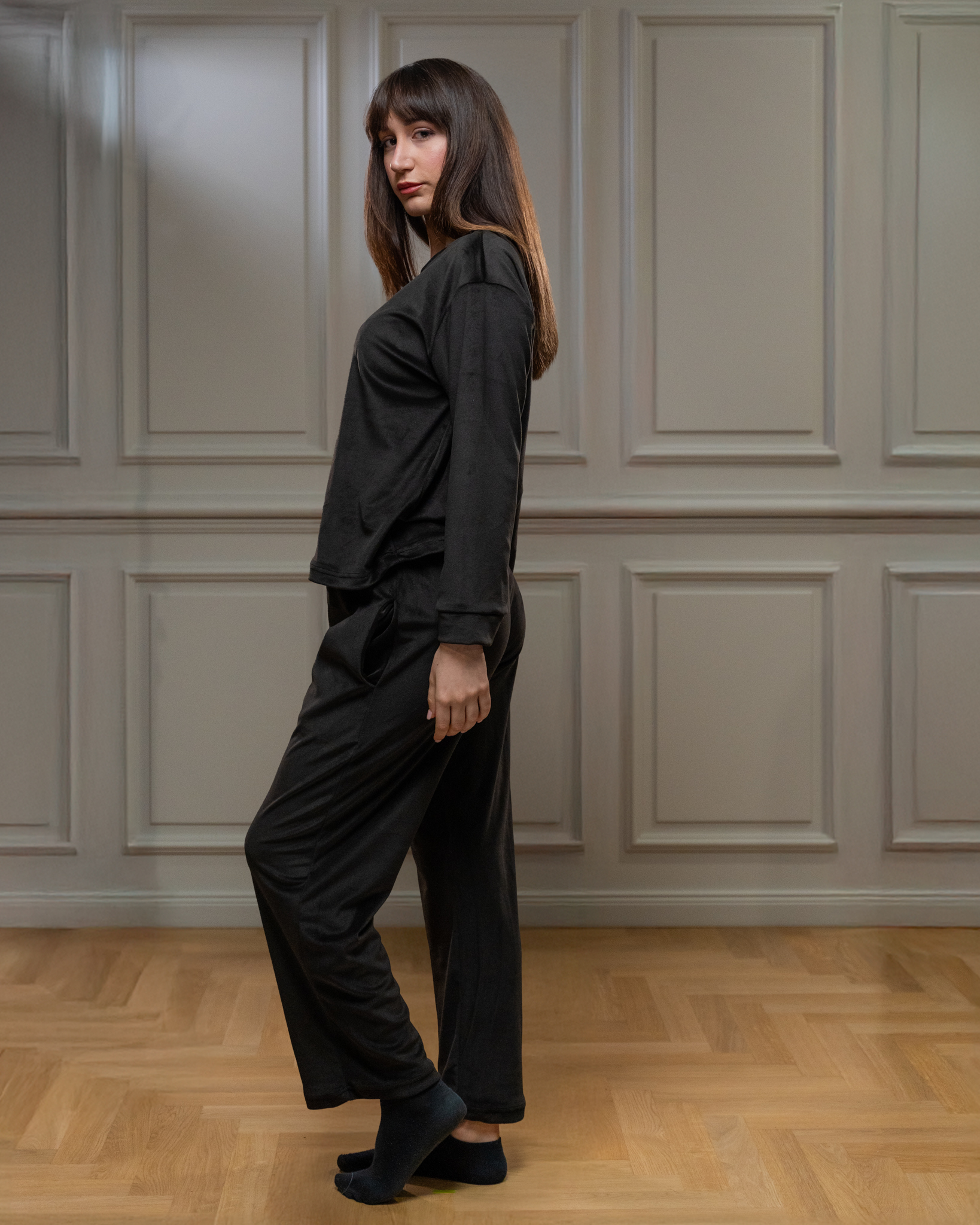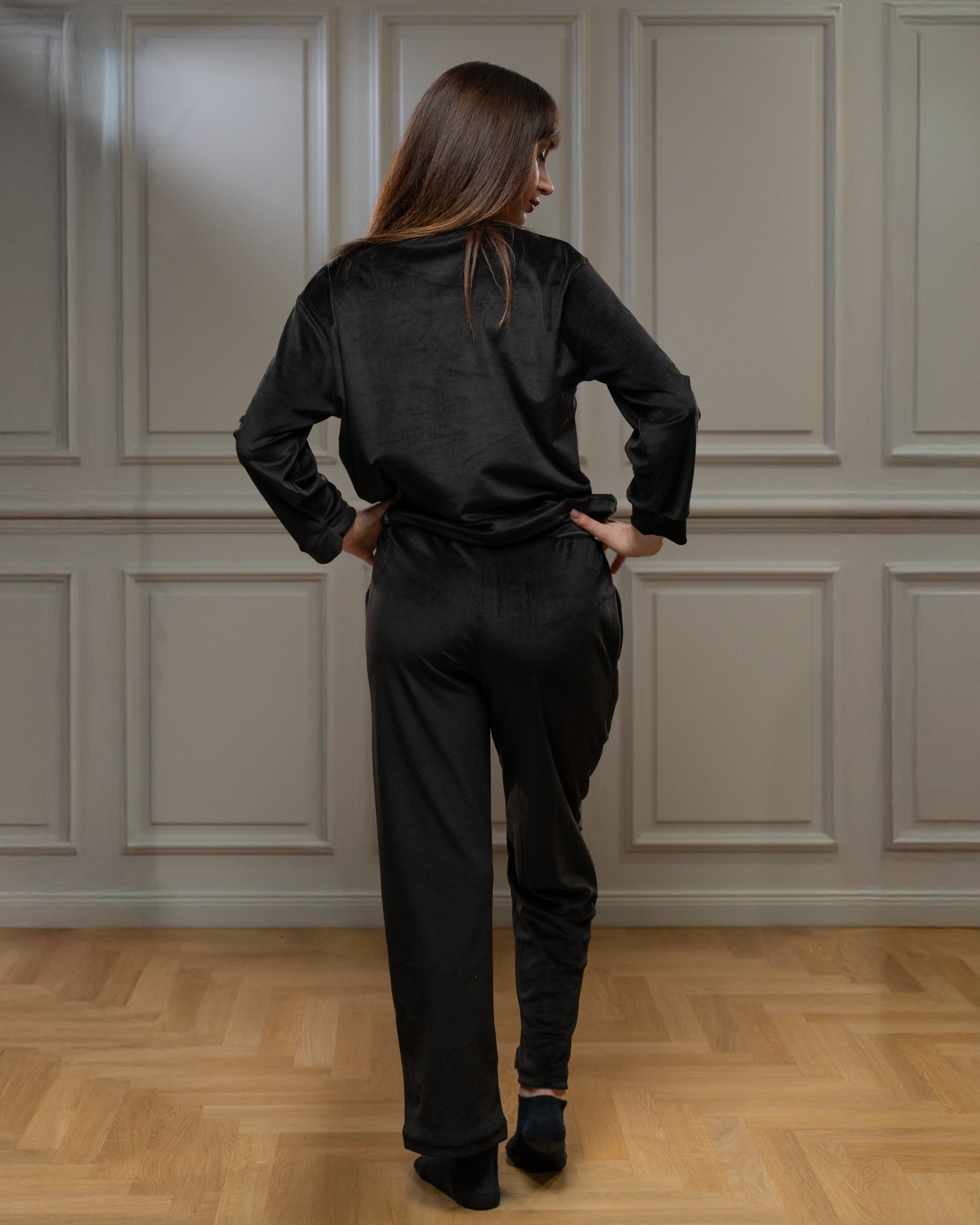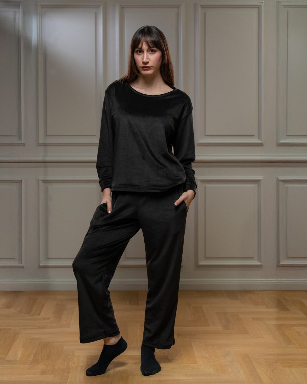 Πιτζάμα από βελουτέ ύφασμα, εξαιρετικά μαλακή και ελαστική.